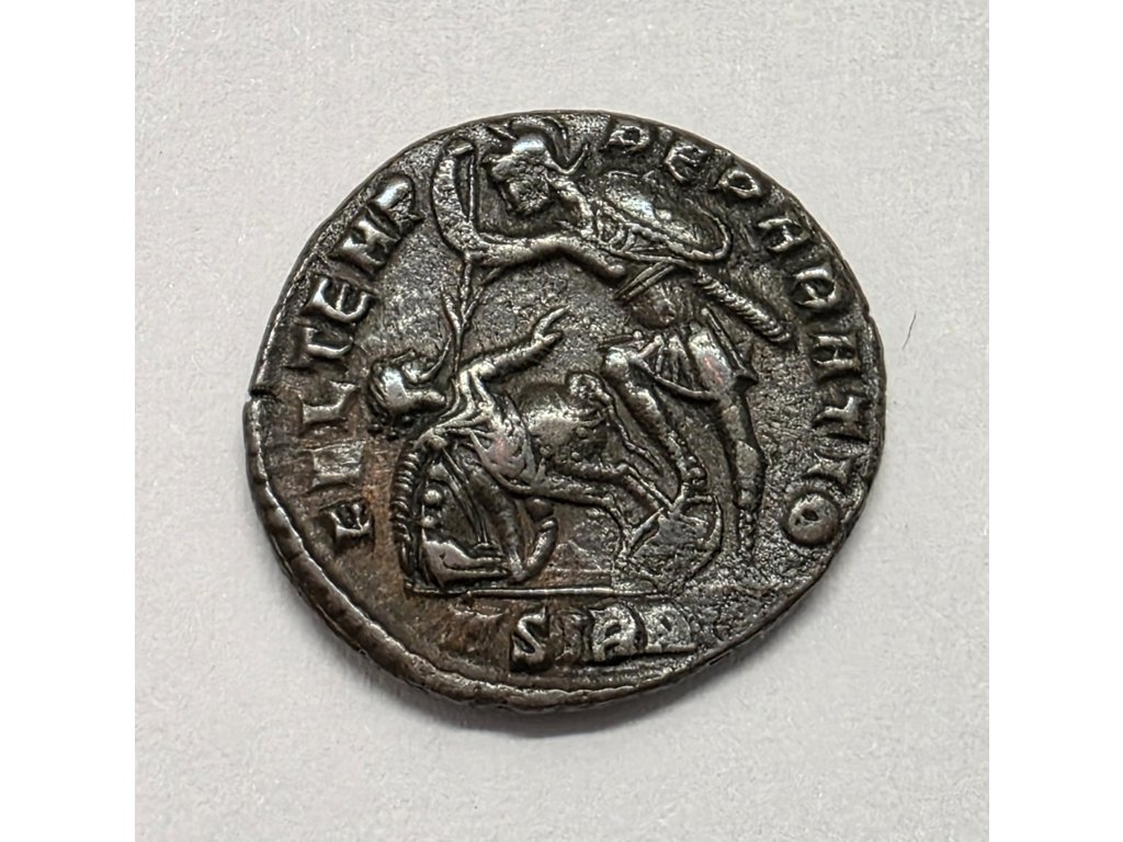 Constantius II. 324-361 n.l., 1/2 Centenionalis, Sirmium, FEL TEMP REPARATIO, vojak prebodáva padlého jazdca, krásna patina, EF