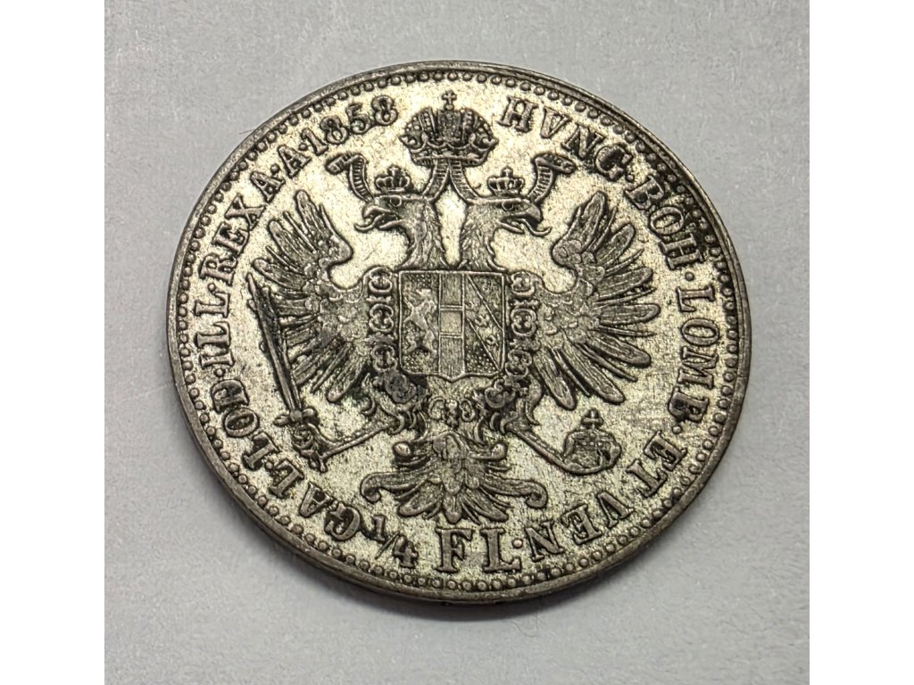 Franz Joseph I. 1848-1916, 1/4 Zlatník 1858 A, Viedeň, gEF