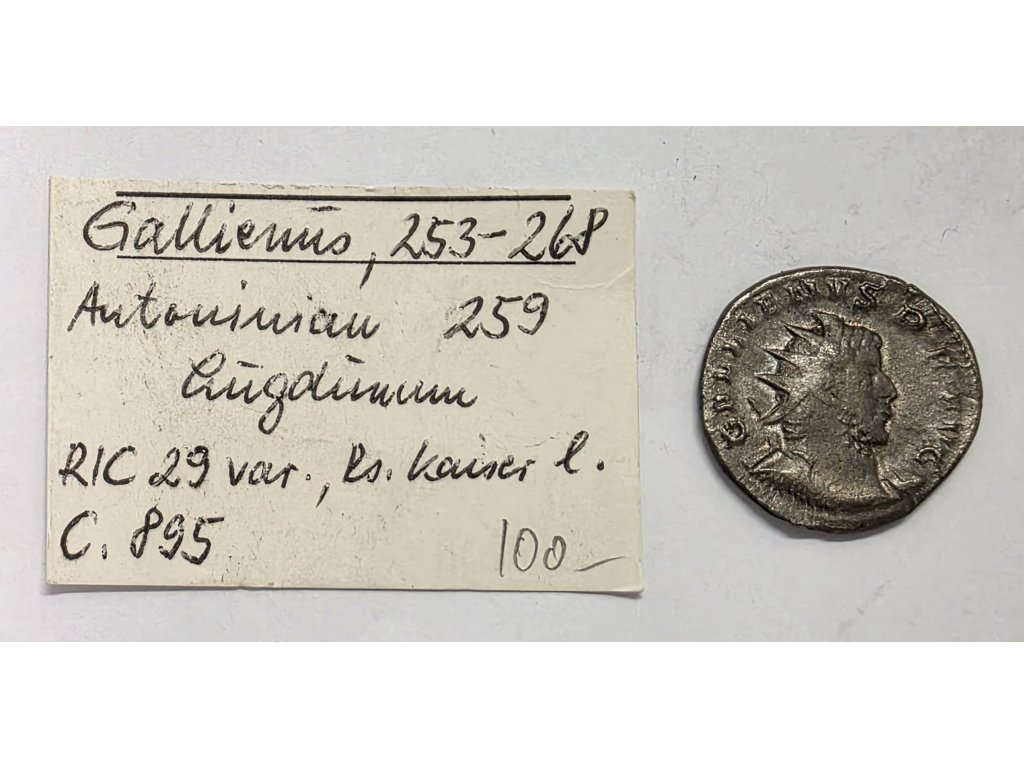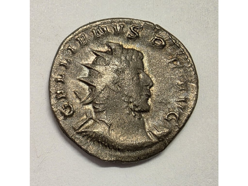 Gallienus 253-268 n.l., Antoninián, RESTIT GALLIAR, Gallienus stojaci vľavo, pomáha kľačiacej osobe, "R" vzácny, krásna patina, gVF