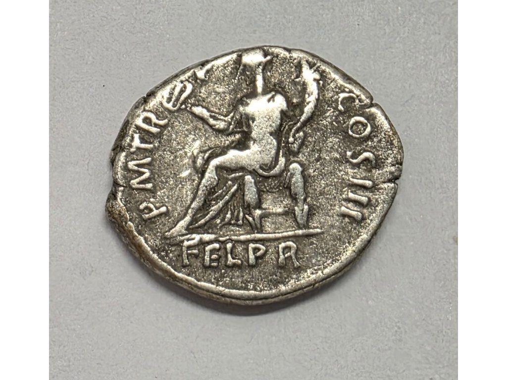 Hadrianus 117-138 n.l., Denár, FEL P R P M TR P COS III, Felicitas sediaca vľavo, VF