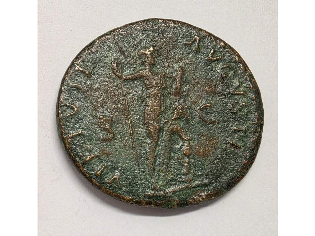 Domitianus 69-96 n.l., Dupondius, VIRTVTI AVGVSTI SC, Virtus stojaci vpravo, krásna patina, VF