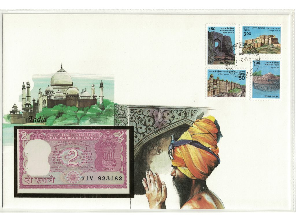 India bankovka v obálke 2 Rupie