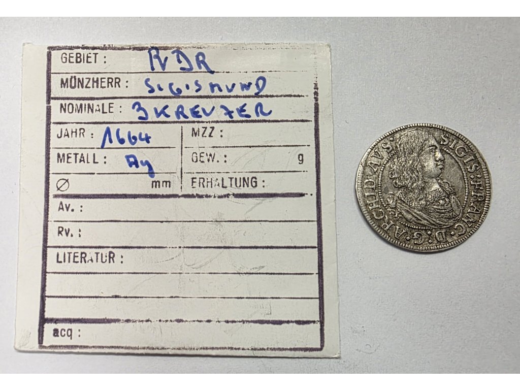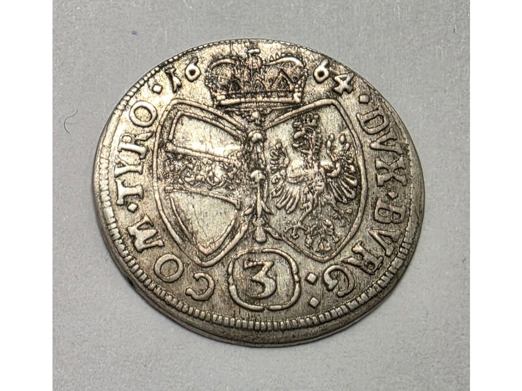 Arcivojvoda Sigismund Franz 1662-1665, 3 Grajciar 1664 Hall, aUNC