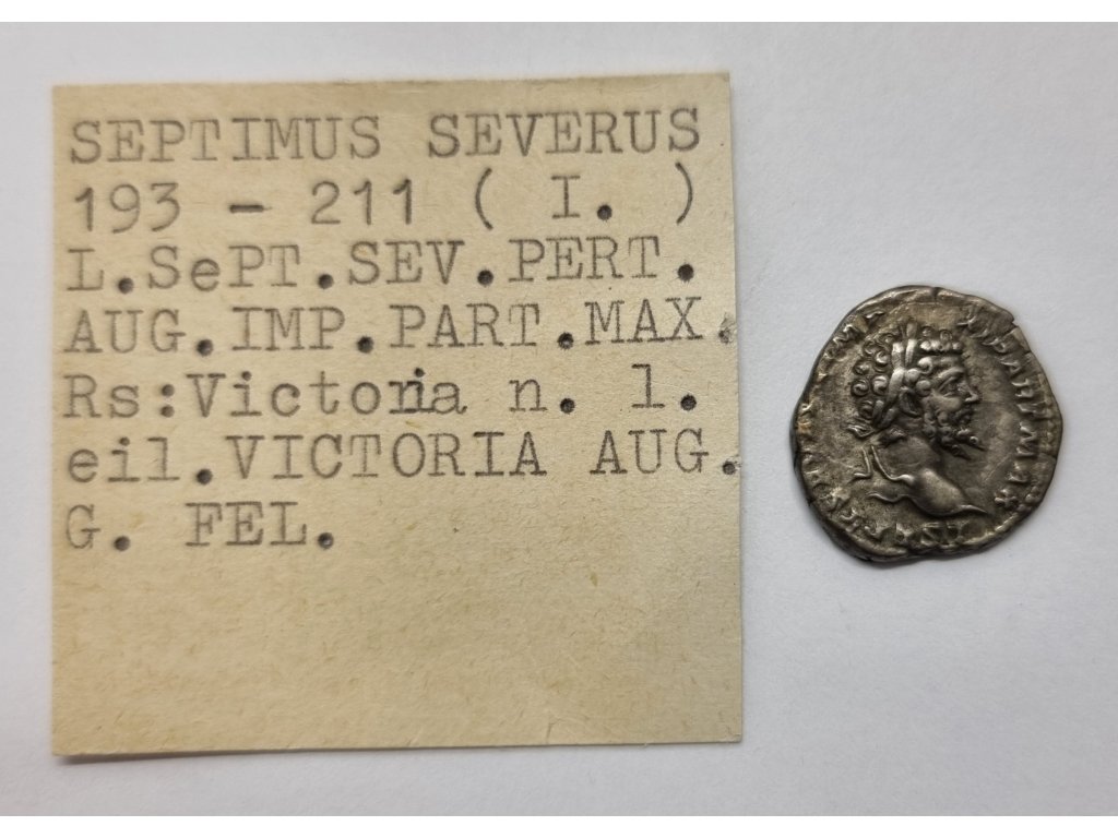 Septimius Severus 193-211, Denár, VICTORIAE AVG FEL, Viktória letiaca vľavo, krásna patina, EF