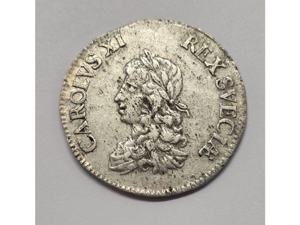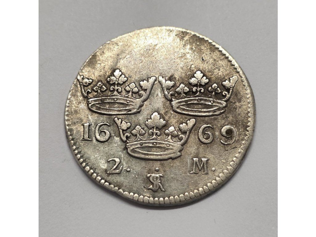 Švédsko, Karol XI. 1660-1697, 2 Marka 1669 First, pekná patina, gVF
