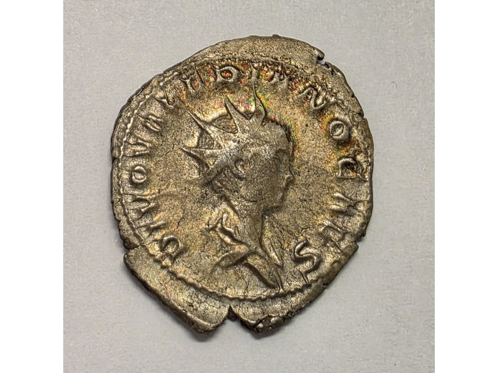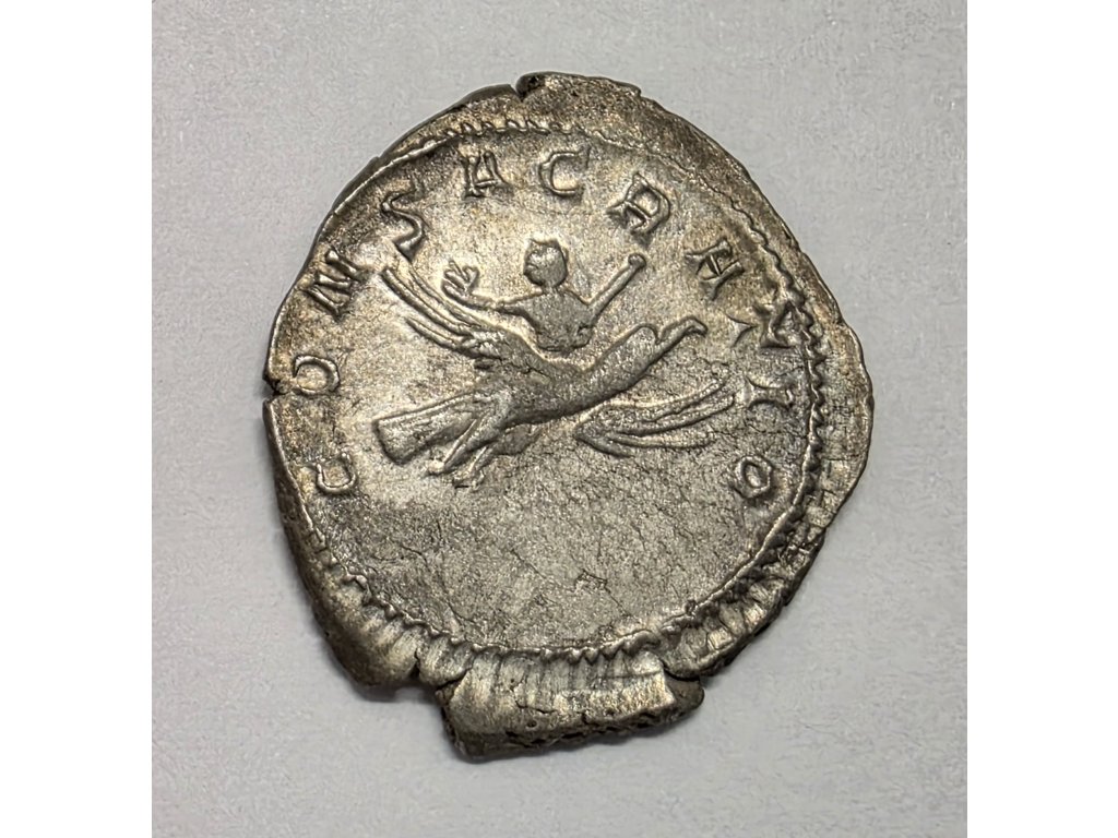 Valerianus II. 256-258, Antoninián, Lugdunum, CONSECRATIO, orol, nesie Valeriana II. do nebies, krásna patina, aEF