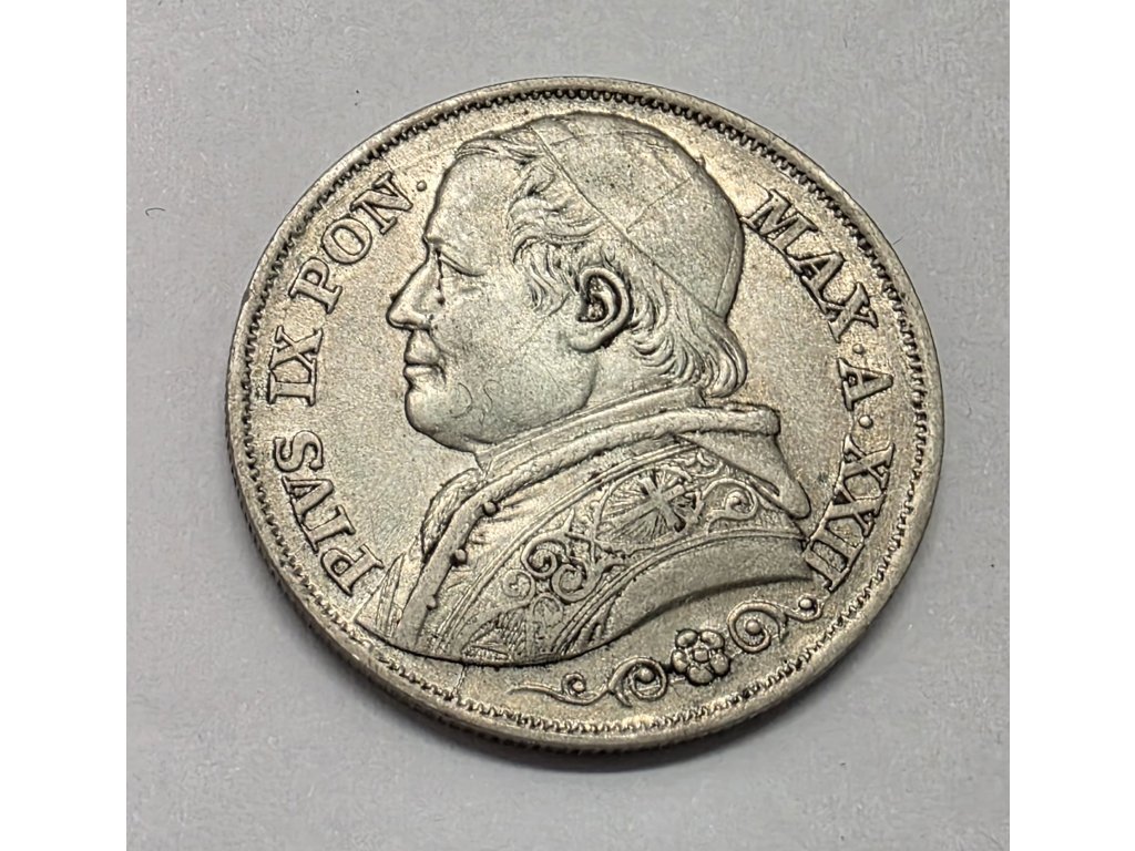 Vatikán, Pius IX. 1846-1878, 2 Lira 1867 XXII R, EF